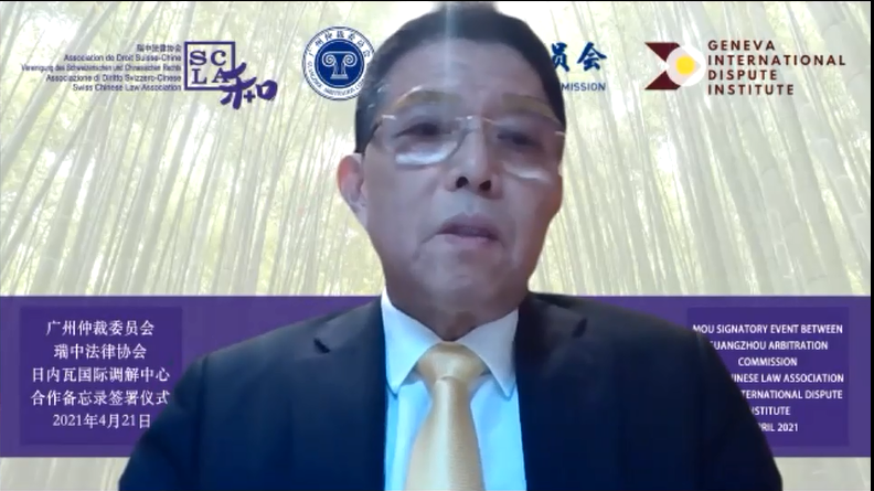 北京时间2021年4月21日,广州仲裁委员会与瑞中法律协会(Swiss Chinese Law Association,SCLA)、日内瓦国际调解中心(Geneva International Dispute Institute,GIDI)通过远程视频方式举行“广州标准”合作备忘录签约仪式暨APEC-ODR平台推介会。广州仲裁委员会副主任王天喜致辞并介绍广仲发展概况,广州仲裁委员会签约代表李珊秘书长分别与瑞中法律协会代表菲利普·哈克特(Philip Hackett QC)皇家律师、日内瓦国际调解中心代表赫曼·诺尔特(Hermann Knott)博士签订合作备忘录。20余位代表出席视频会议并分享交流意见。